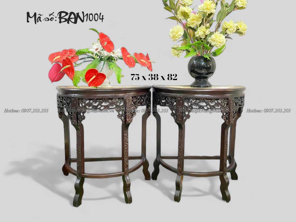 Bàn bán nguyệt hoa mai bày đồ gỗ gụ